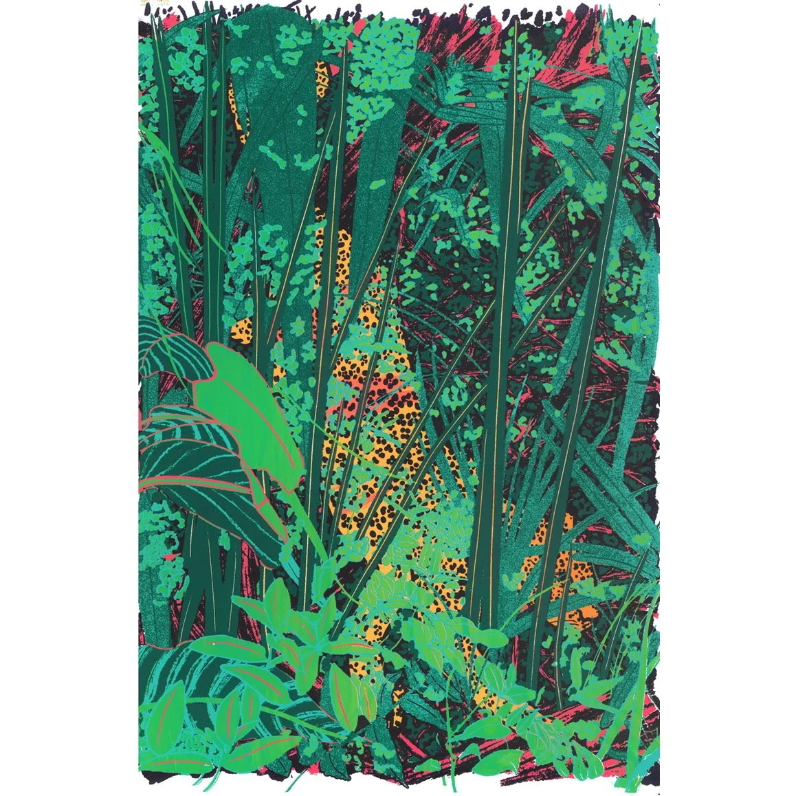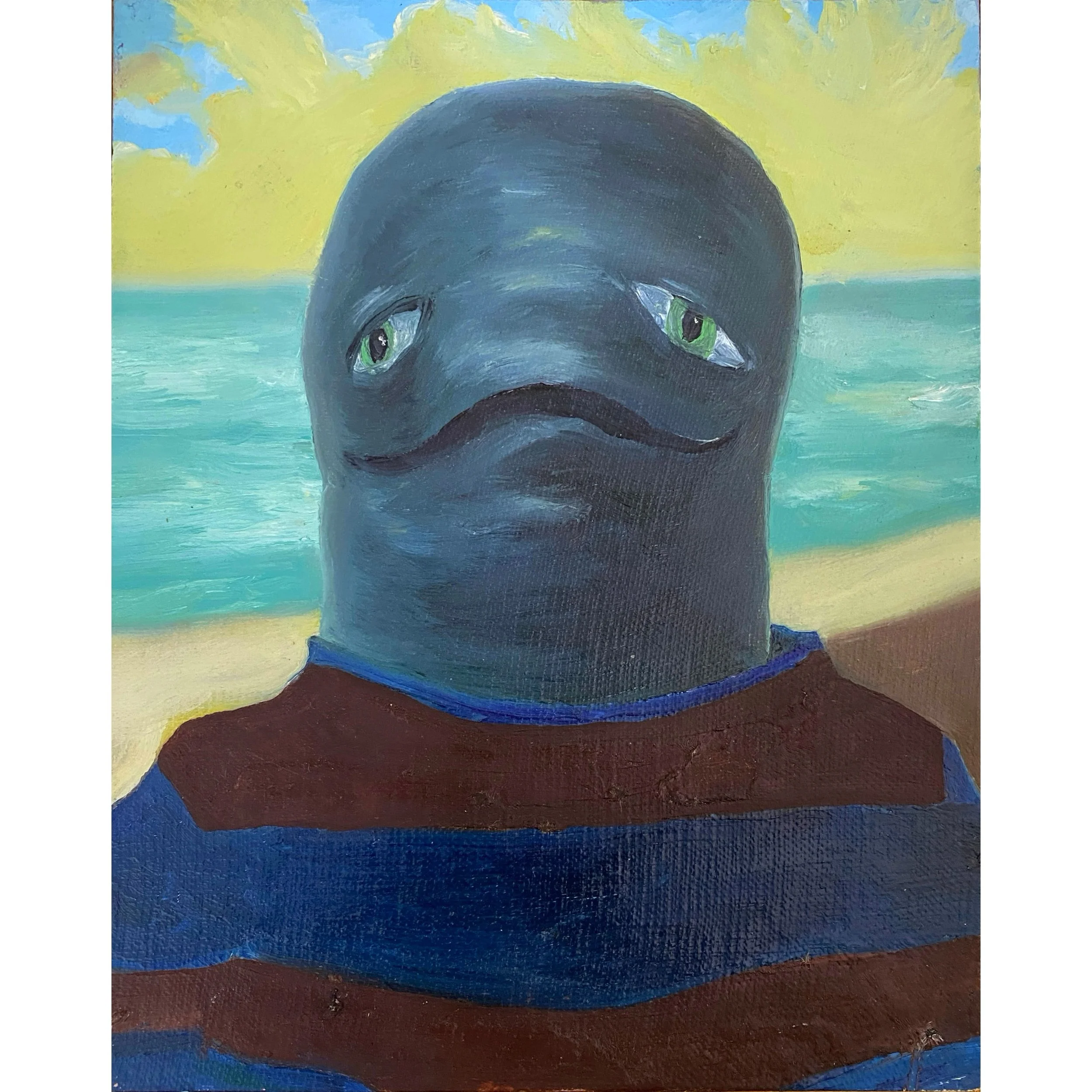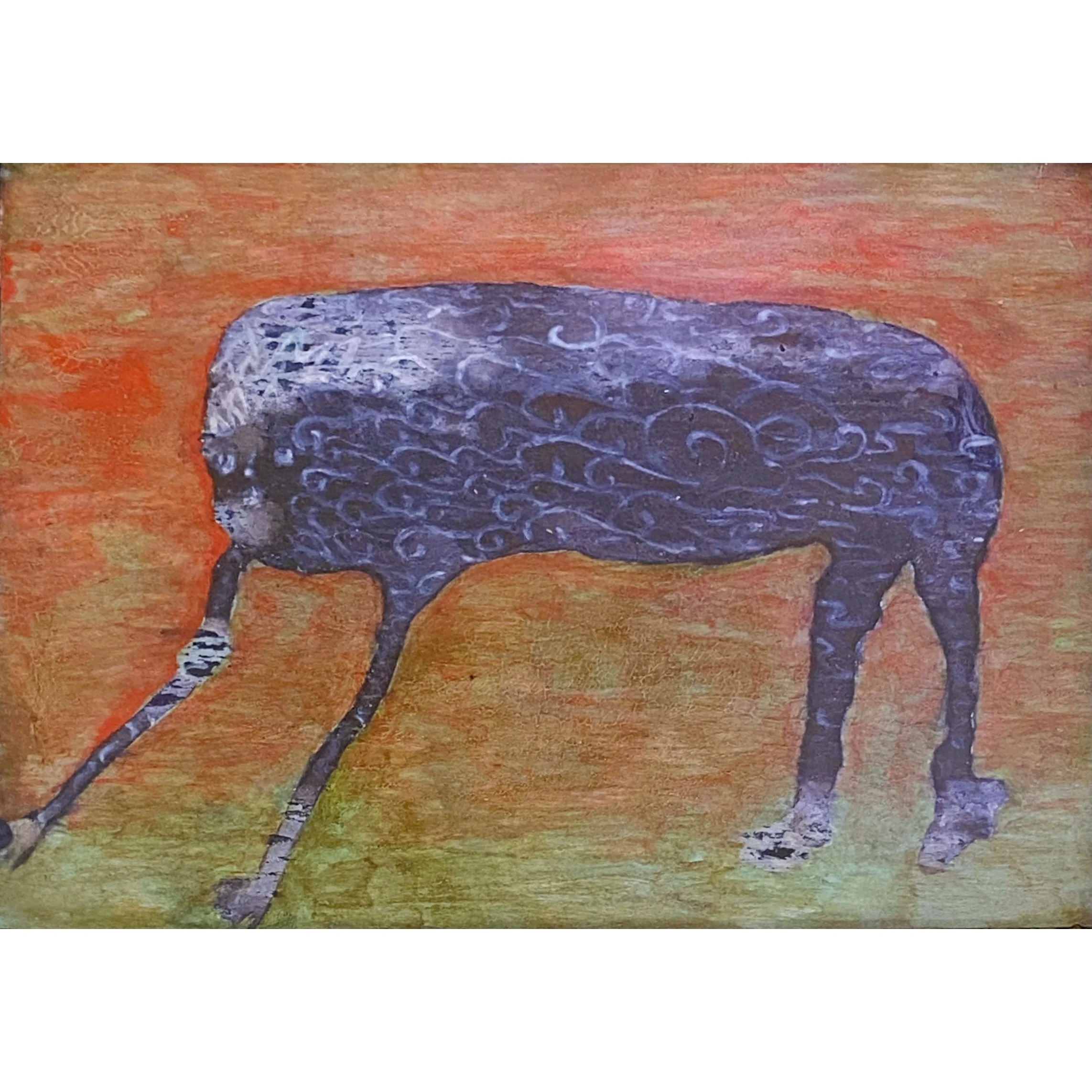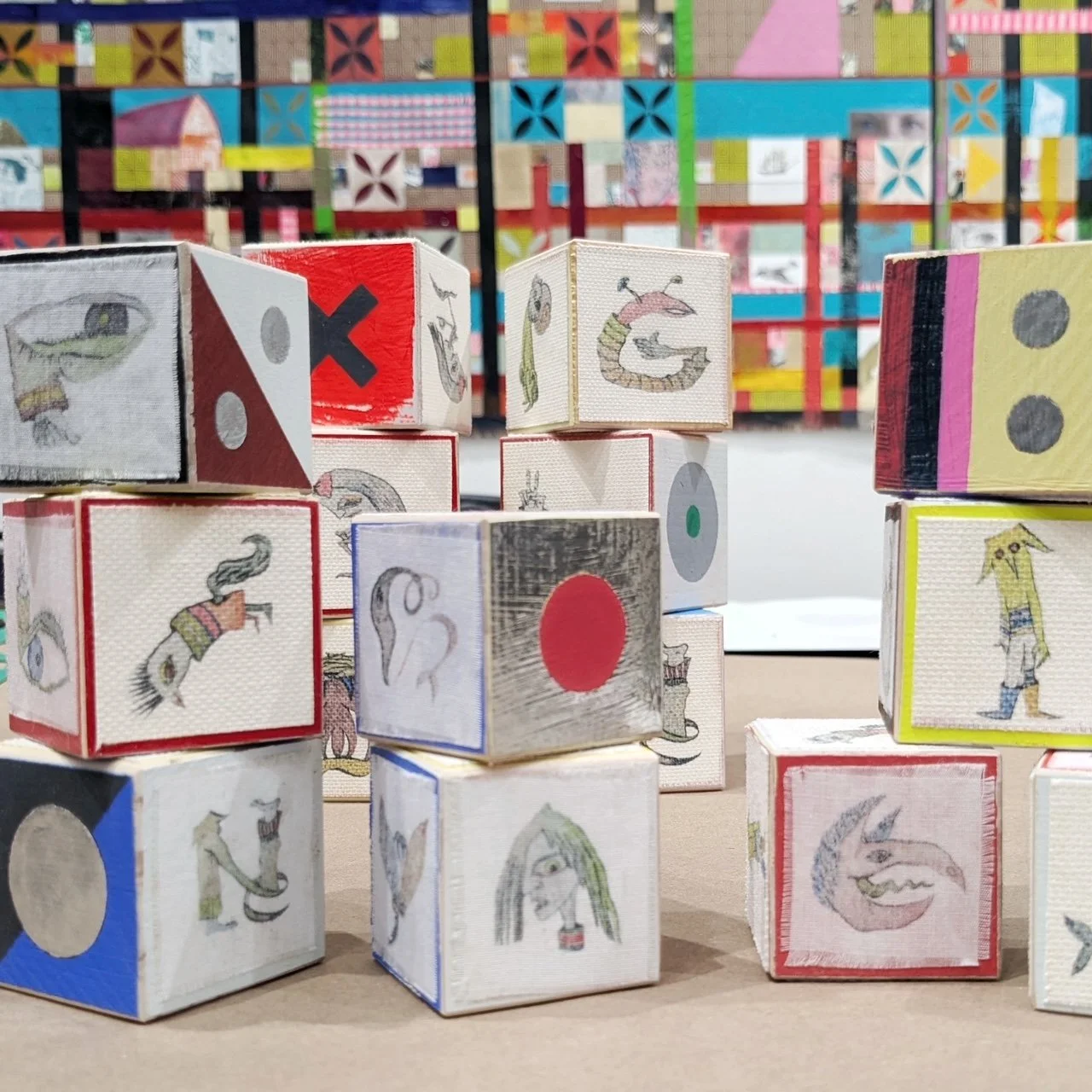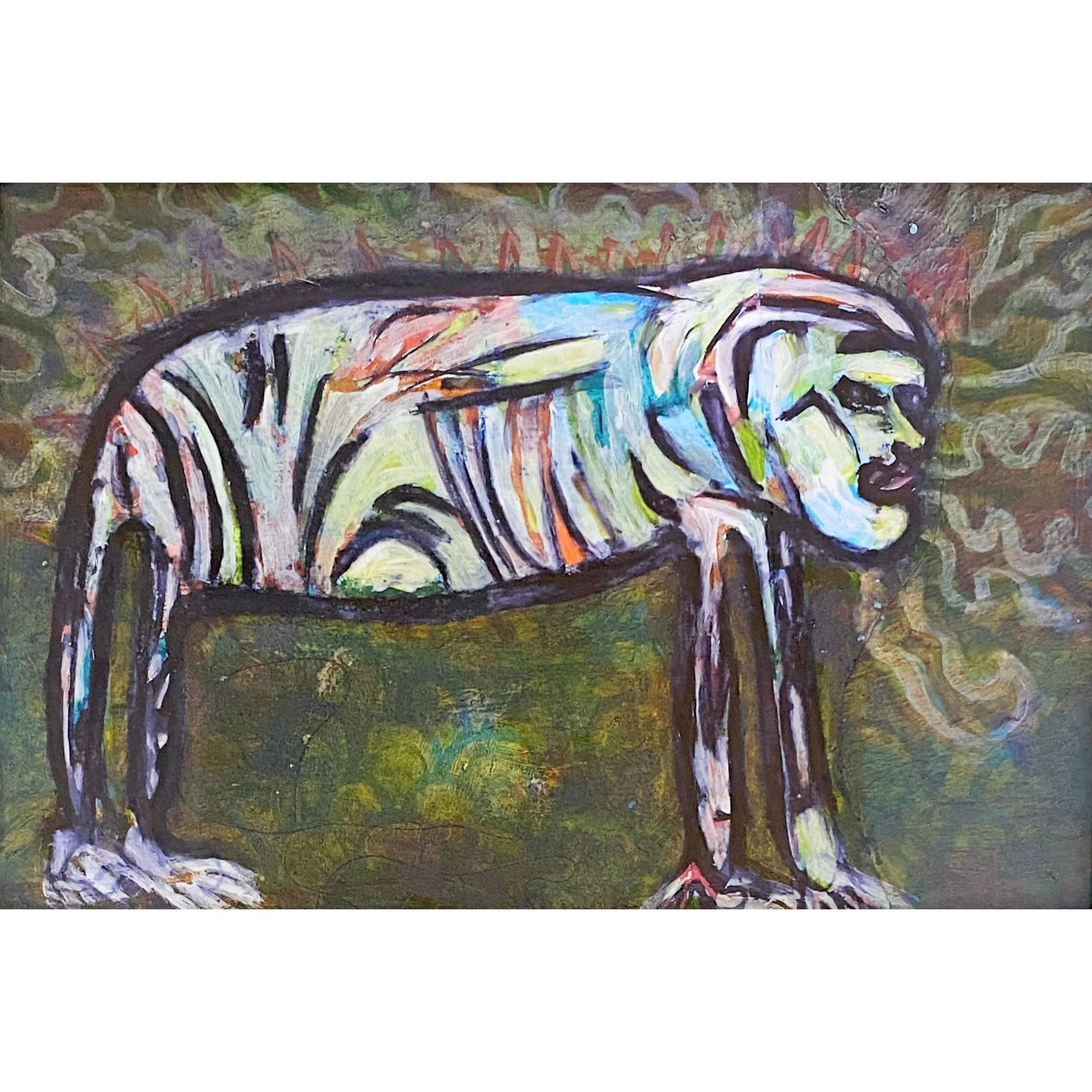 Untitled (multi-colored rough figure on dark pattern), 2025
