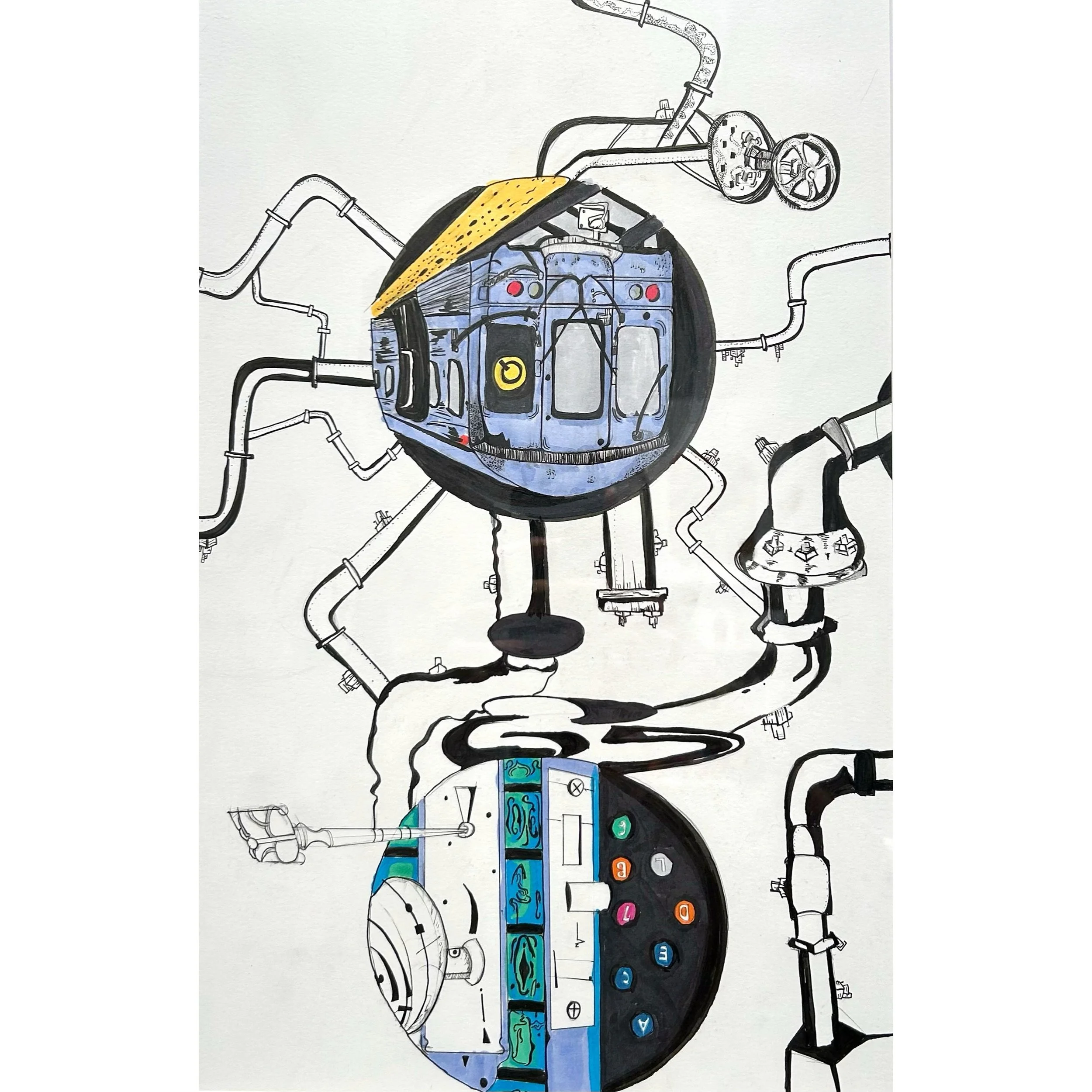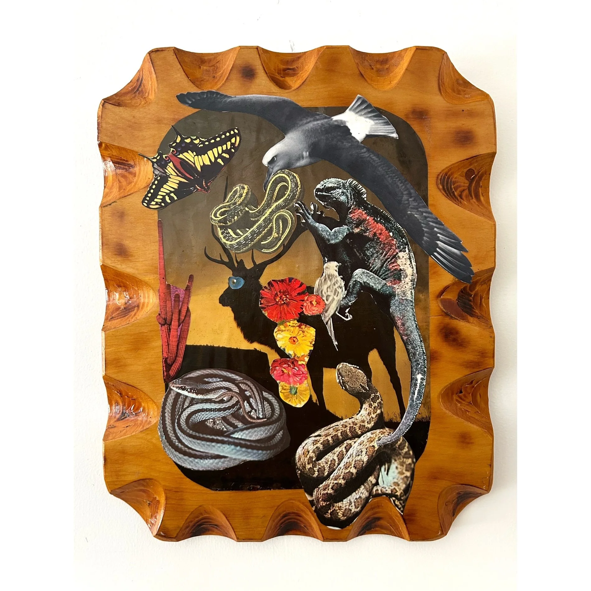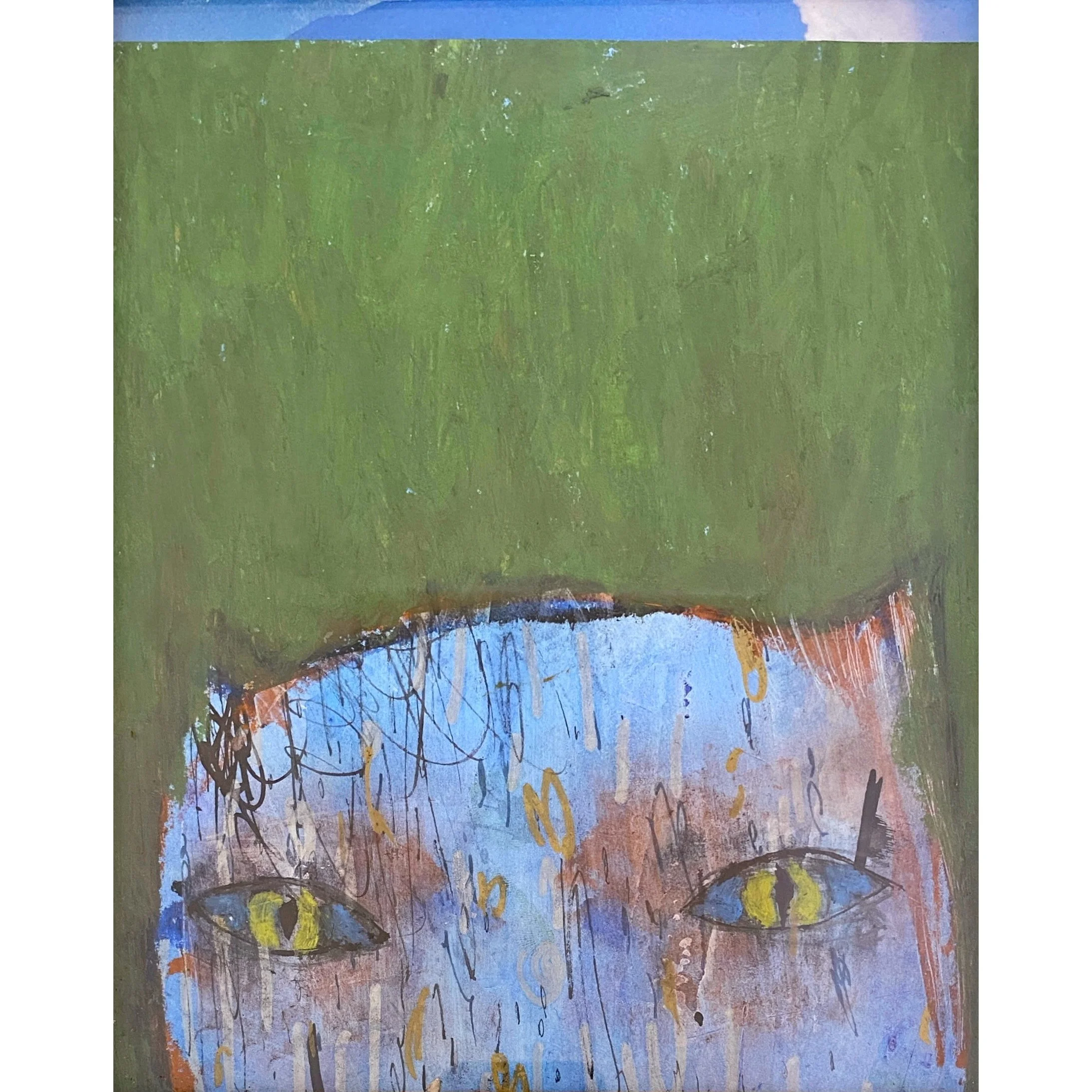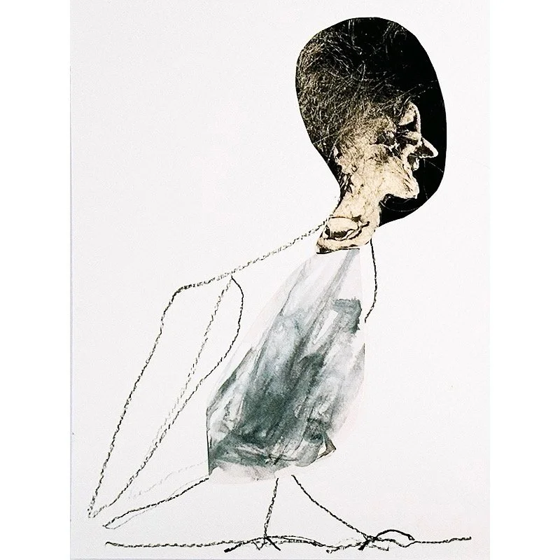 Acrylic, ink, oil bar, pentouch, found paper, found frame
