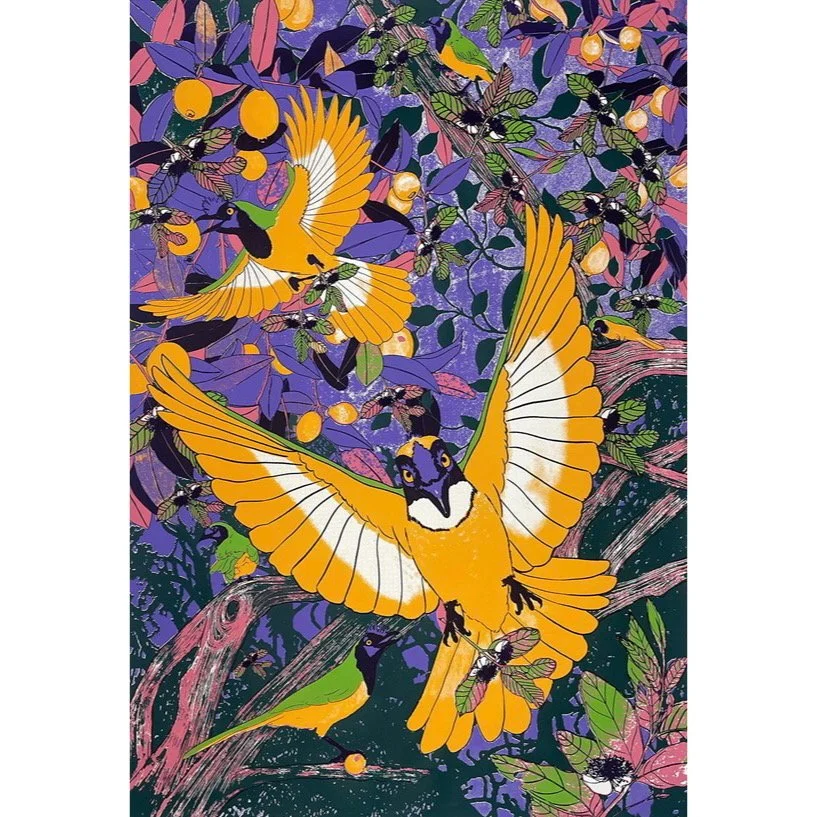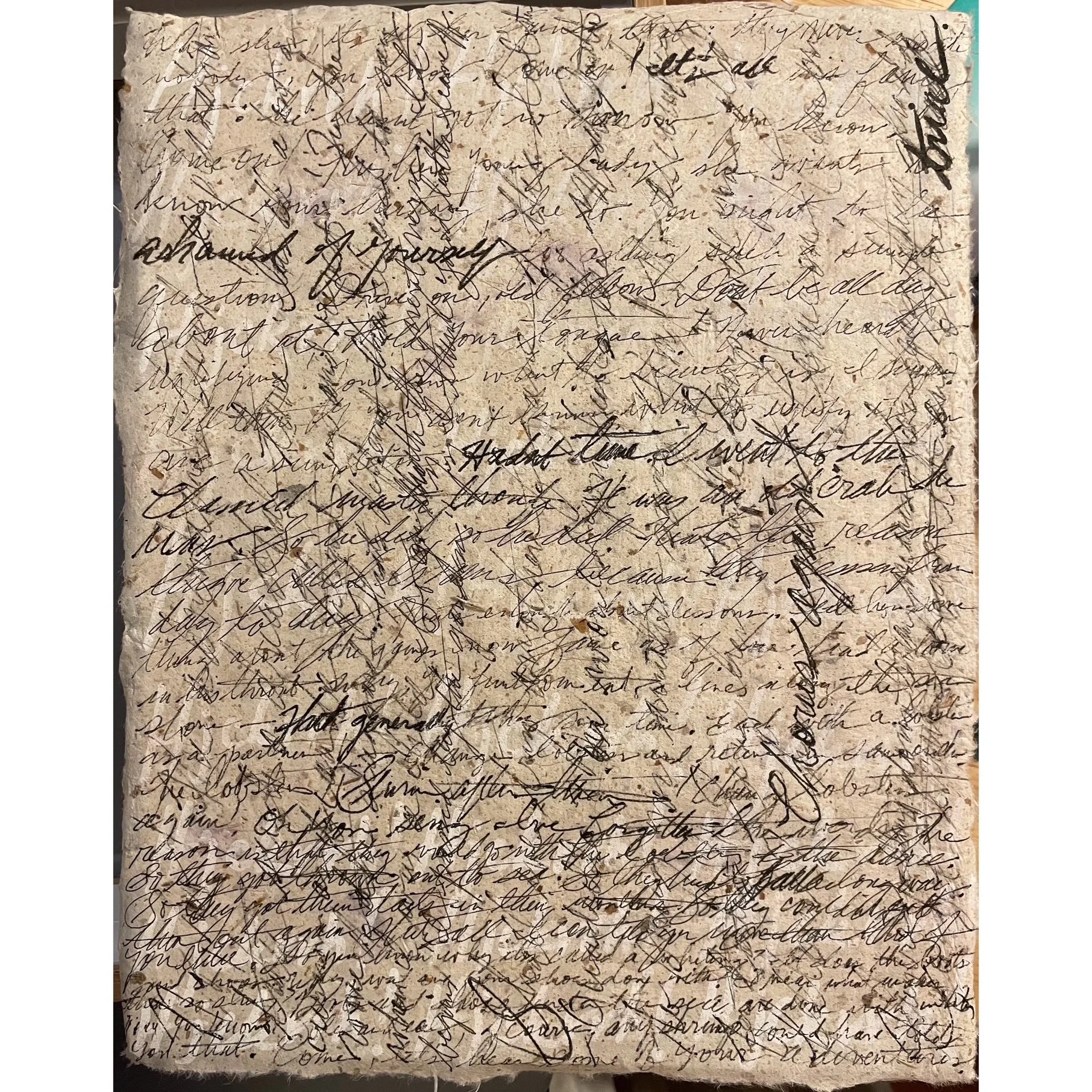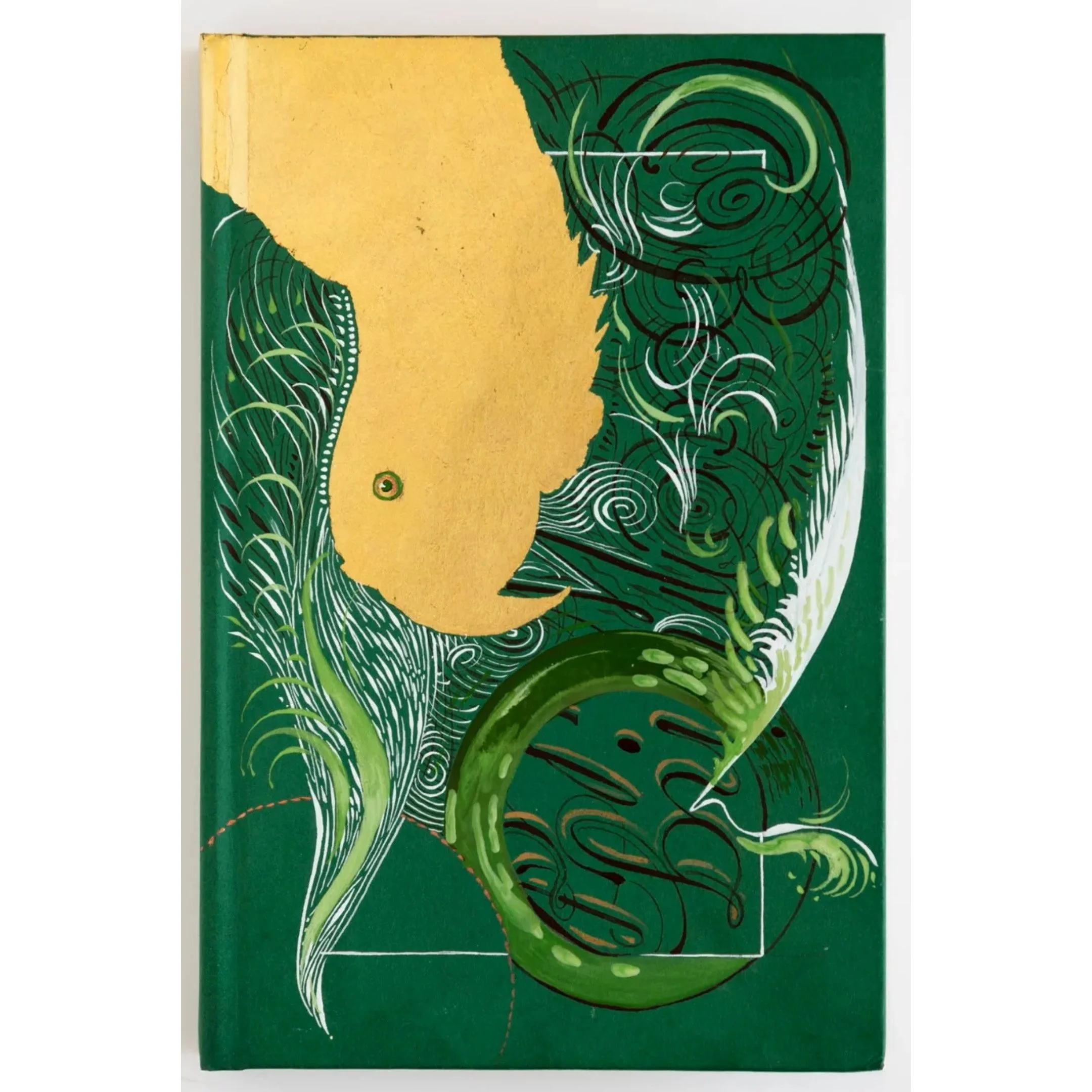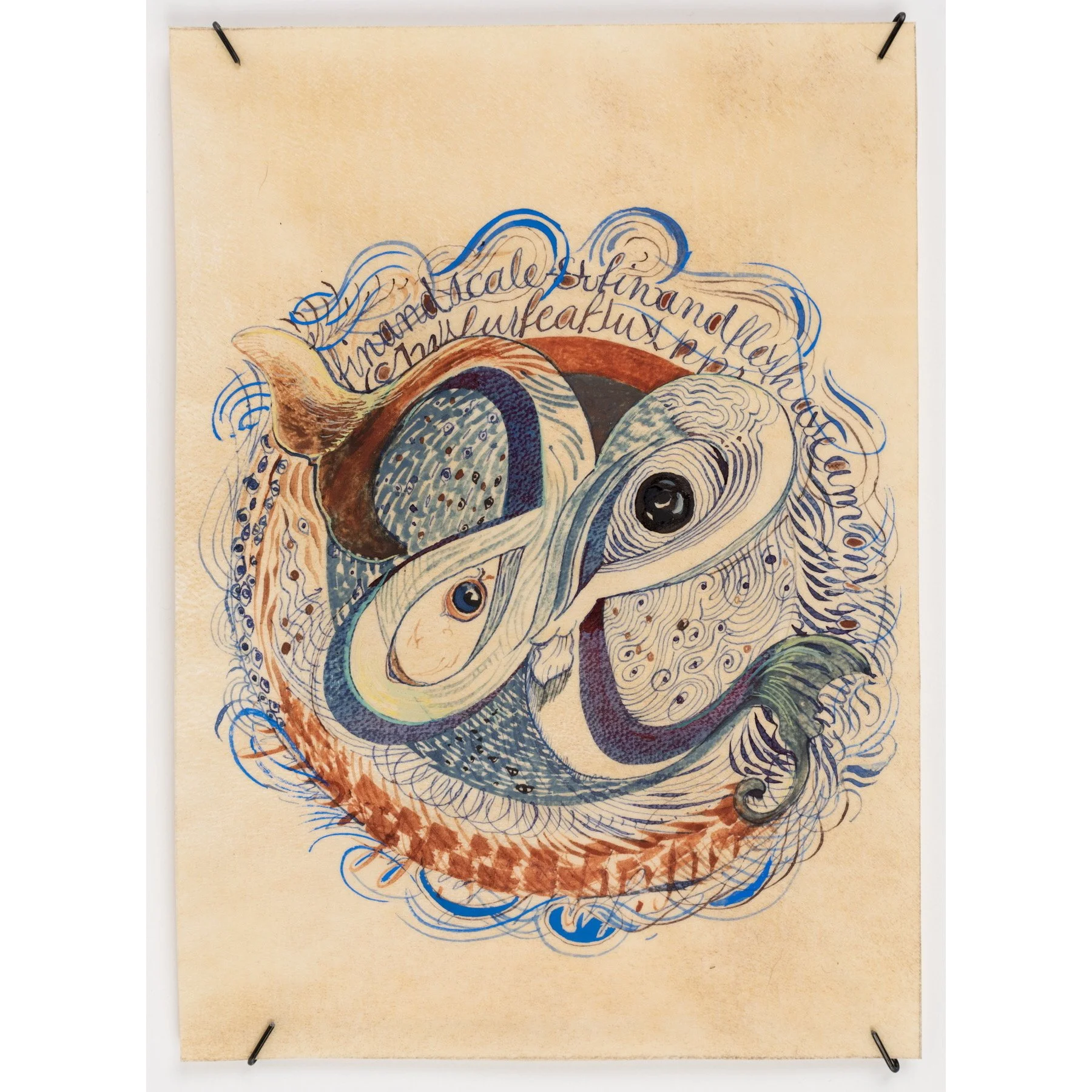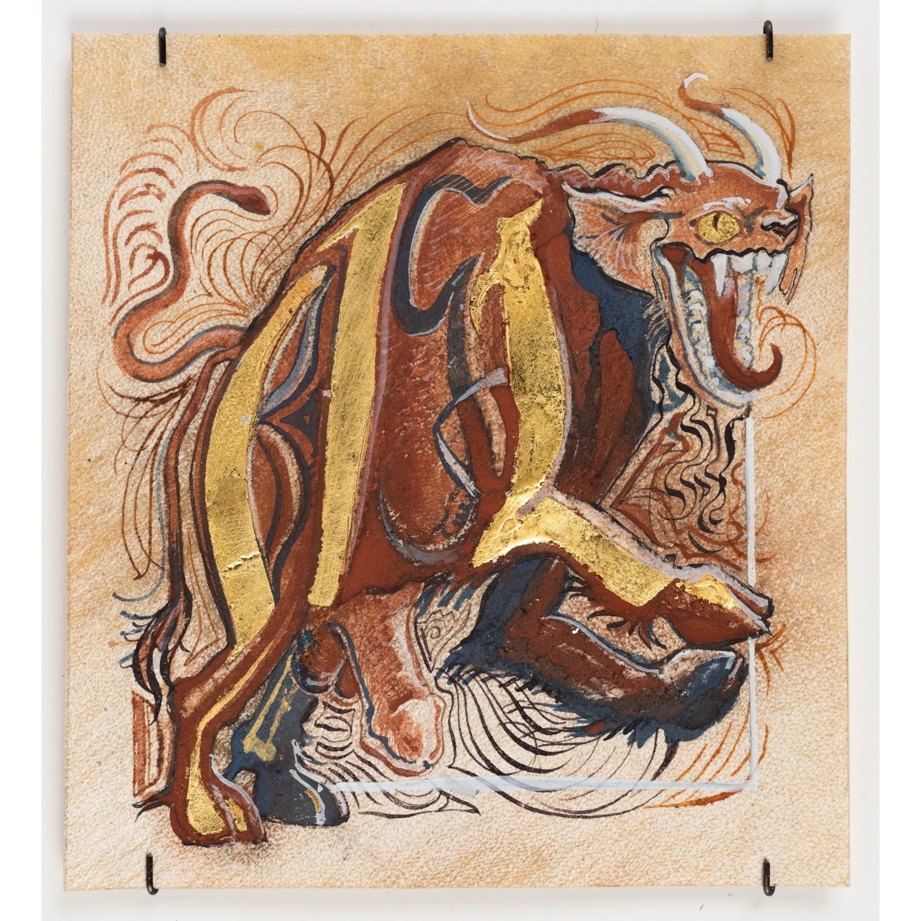 I am interested in complicating communication, and developing more richly meaningful vessels for our languages to occupy, both visually and symbolically. I use hand-made inks, herbs, pigments, and gold leaf on papers and parchments in the tradition of illuminated manuscripts and book arts. My explicit intent is to expand calligraphic illumination’s content scope beyond that of anthropocentrism, and engage in mythic metaphor-making and visual poetry.