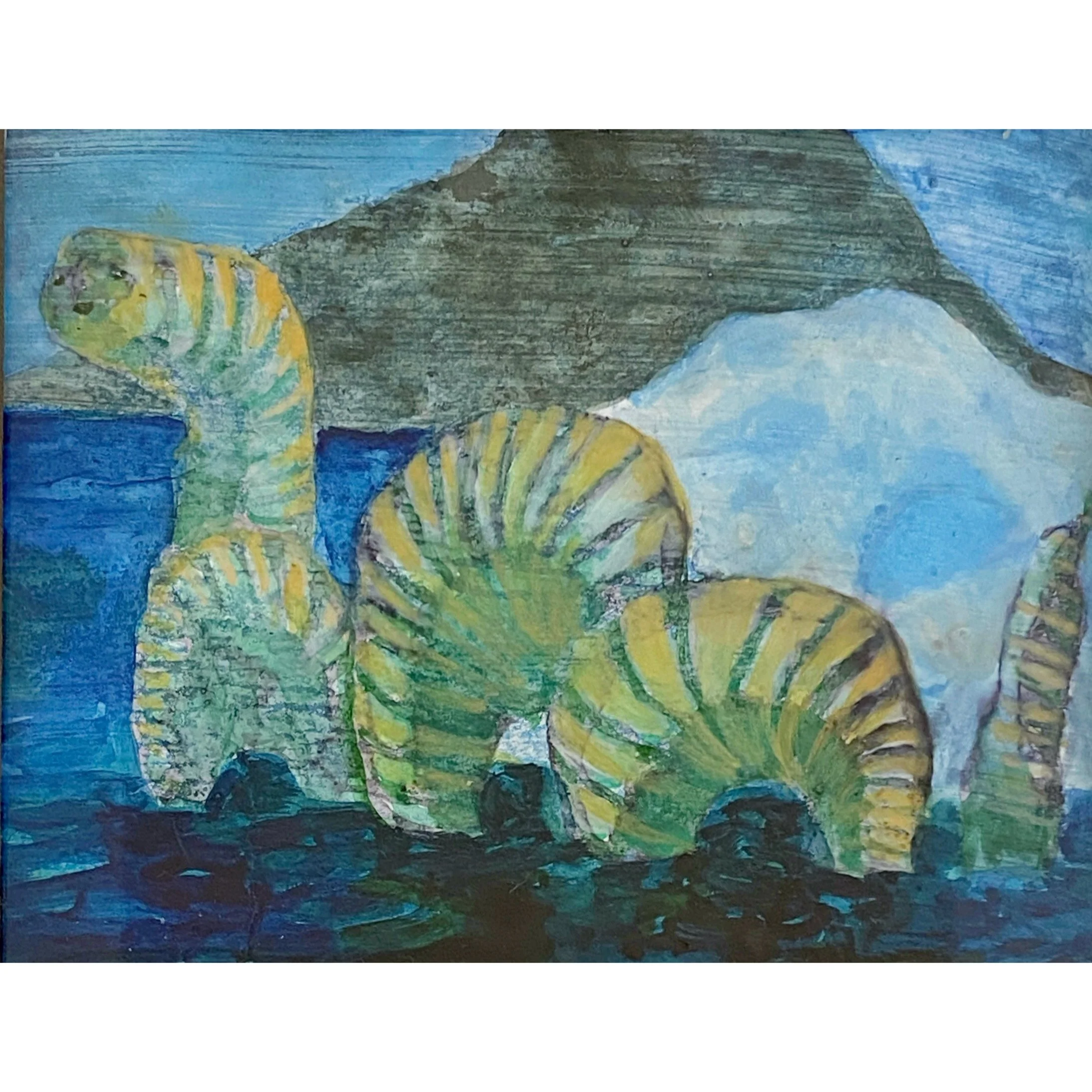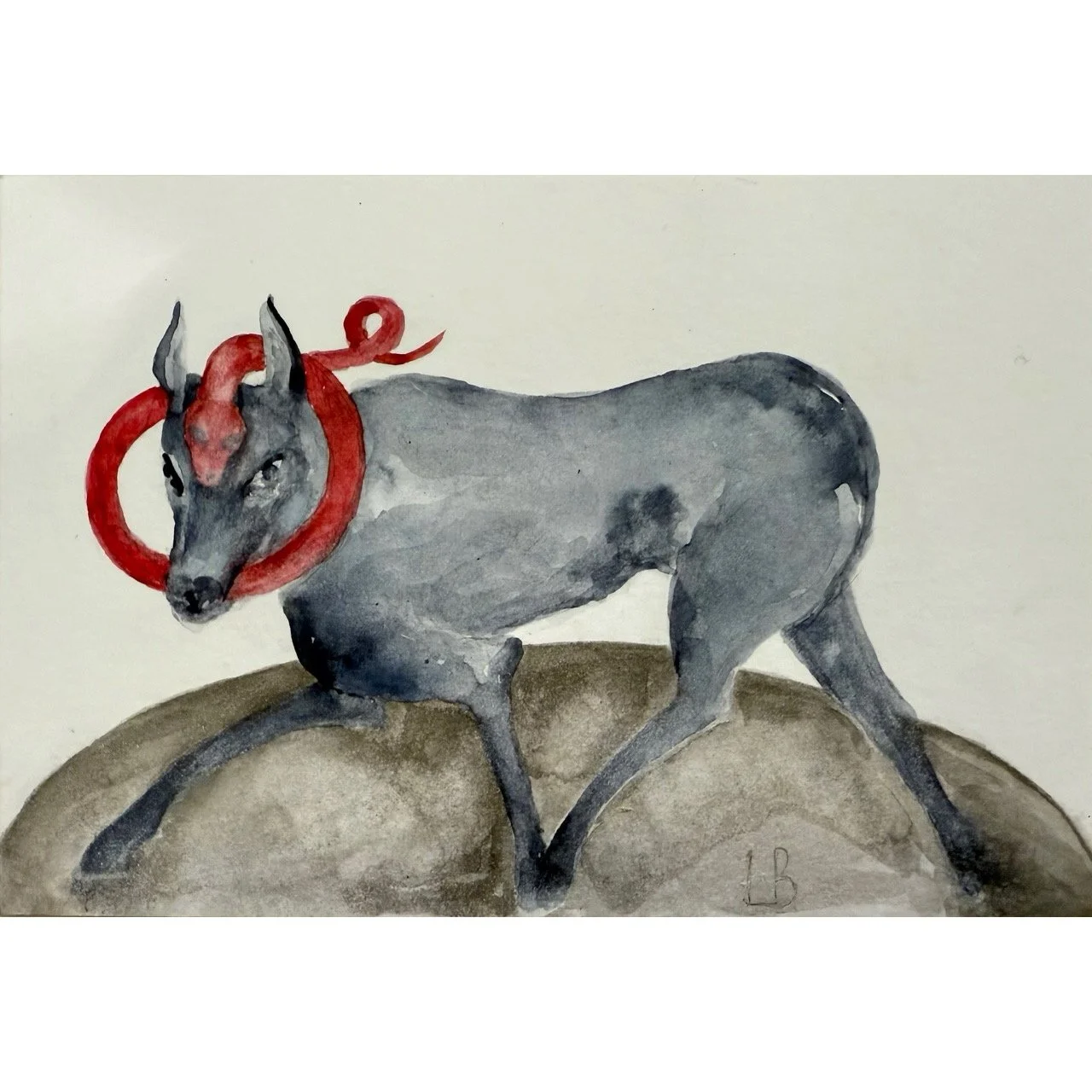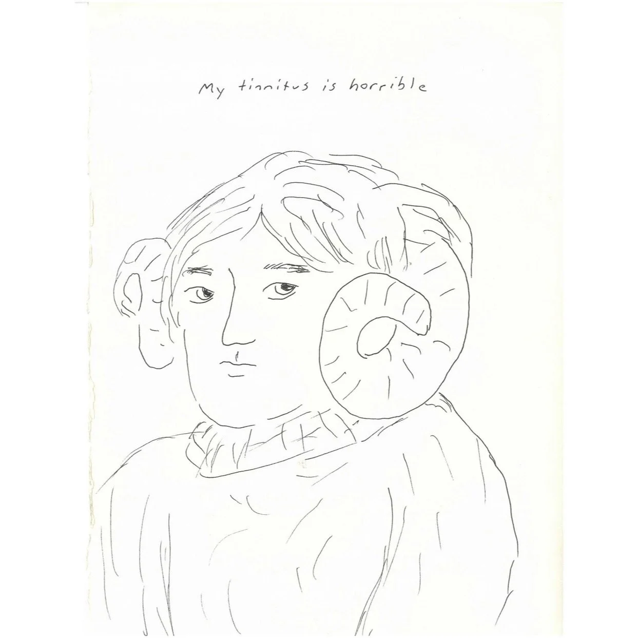 I wake up not knowing what story I’m in. I hear the patter of Marbles and Beep Beep—Marbles named for Raymond and Connie Marble, the villains of John Waters’s Pink Flamingos played by David Lochary and Mink Stole and Beep Beep for her namesake, Tama Janowitz’s dog in the 1980s—and drift back to myself. I must rise because my geriatric dogs need to be fed and watered and let out ceremonially. Likely they have already gone on the pee-pee pads dotting the house or more likely wherever their tiny, mischievous hearts and bladders please. Recently while organizing, I discovered the box of my juvenilia had been besoiled by my dearests. When I trained them to go on the paper I should have been more specific. I could scarcely be upset though. I’ve spent most of my adult life pissing on my childhood and upbringing. While the dogs eat, I situate myself by perusing the morning jumble of disasters and tidbits, then assess yesterday’s progress and damage. Three boxes unpacked, resorted, abandoned. My dears have had their ways with some drawings of minotaurs, centaurs, satyrs, mermen, and, most viciously, their own portraits.