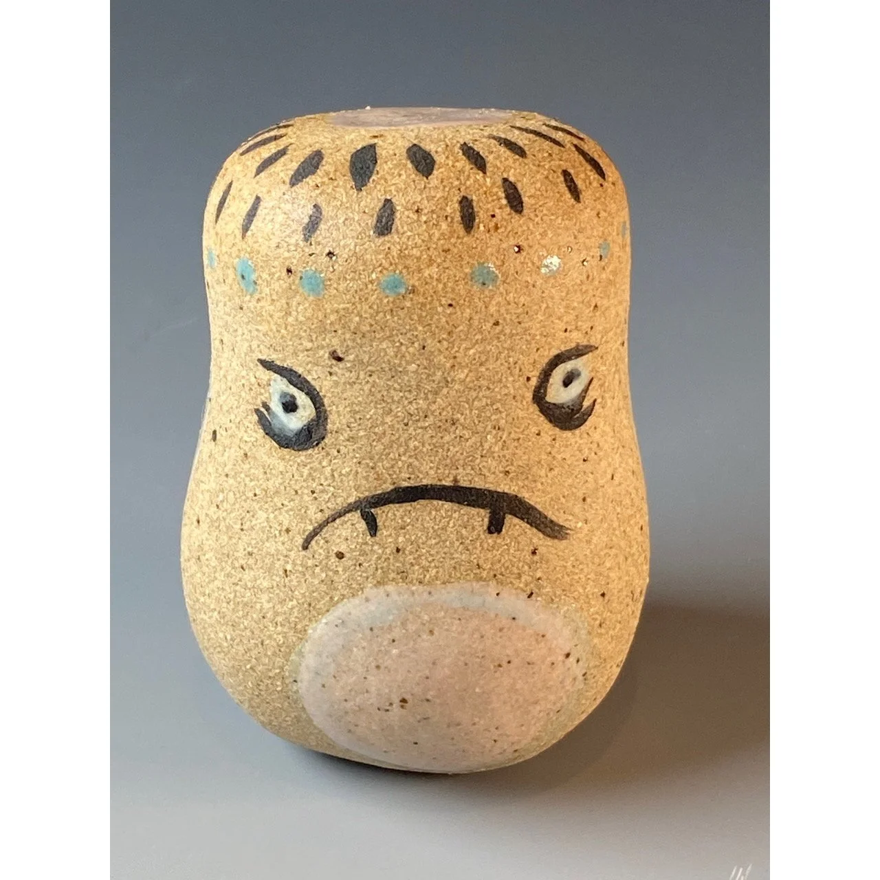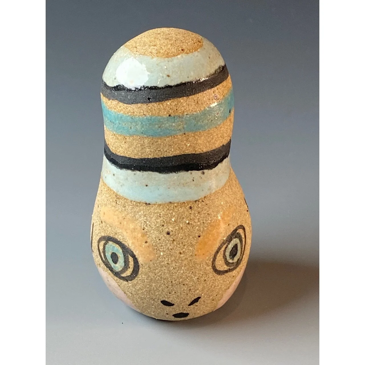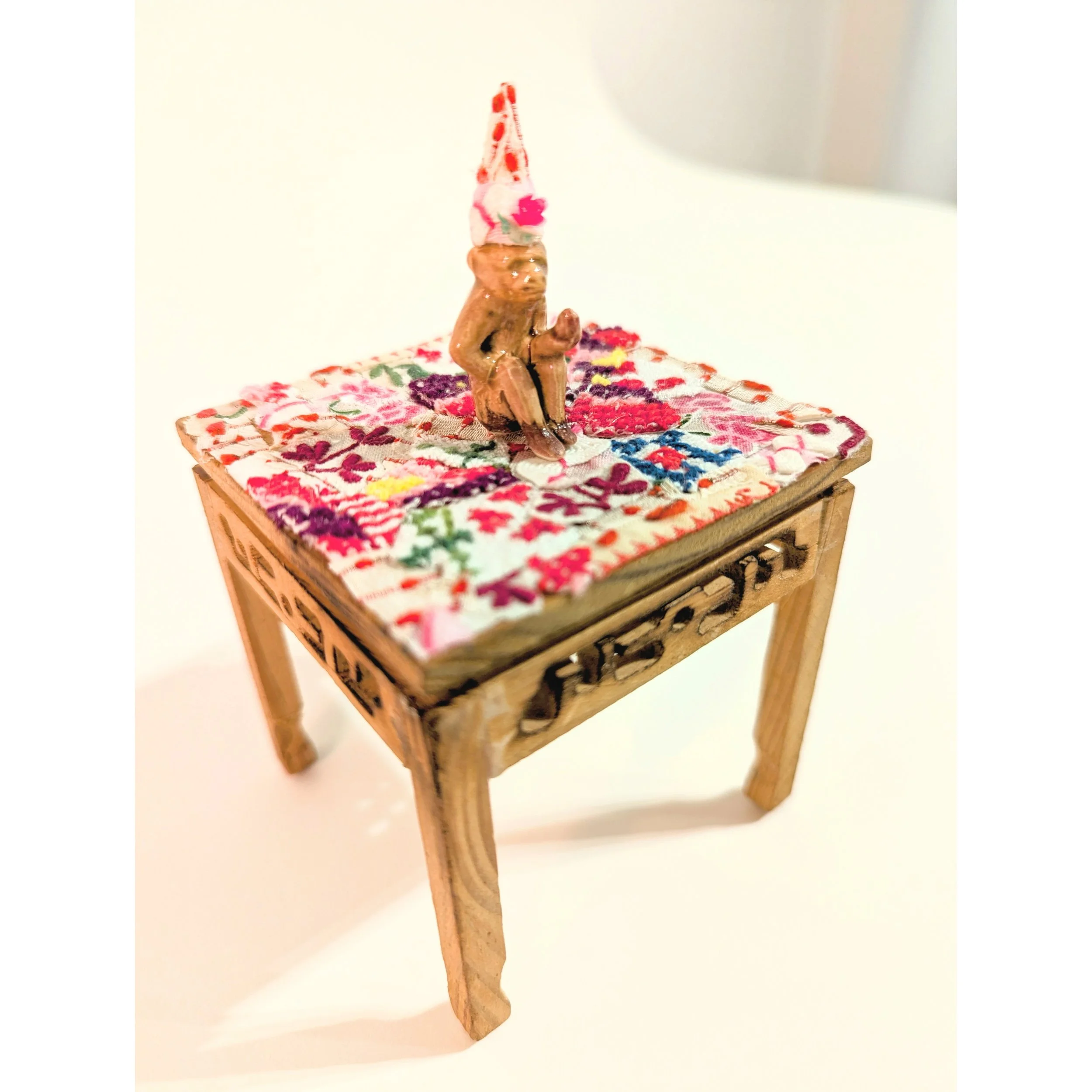 With Dolores, somatic trauma and feminine horror coalesce in kitsch. Inspired by the folk wisdom that hair holds memory, and by Catholic reliquaries and corporeal Victorian memento mori, I've cloaked a childhood Kewpie in my own hair, which I cut myself after a year shaped and shaded by grief. I wanted to express the strange and bittersweet facets of loss through a deeply weird aesthetic collision: Dolores' face is covered in a nod to traditional mourning veils, but her bell-shaped "dress" references the heavily lacquered, high-femme flips of the '60s. More so, a stylized pile of human hair with tiny hands — hands raised in welcome or warning? to grope or to plead? — is wholly unhinged, like some goofy, cult horror gross-out. Dolores is campy, unsettling, maybe even monstrous, but underneath, she is small, she is searching. She is sorrow.