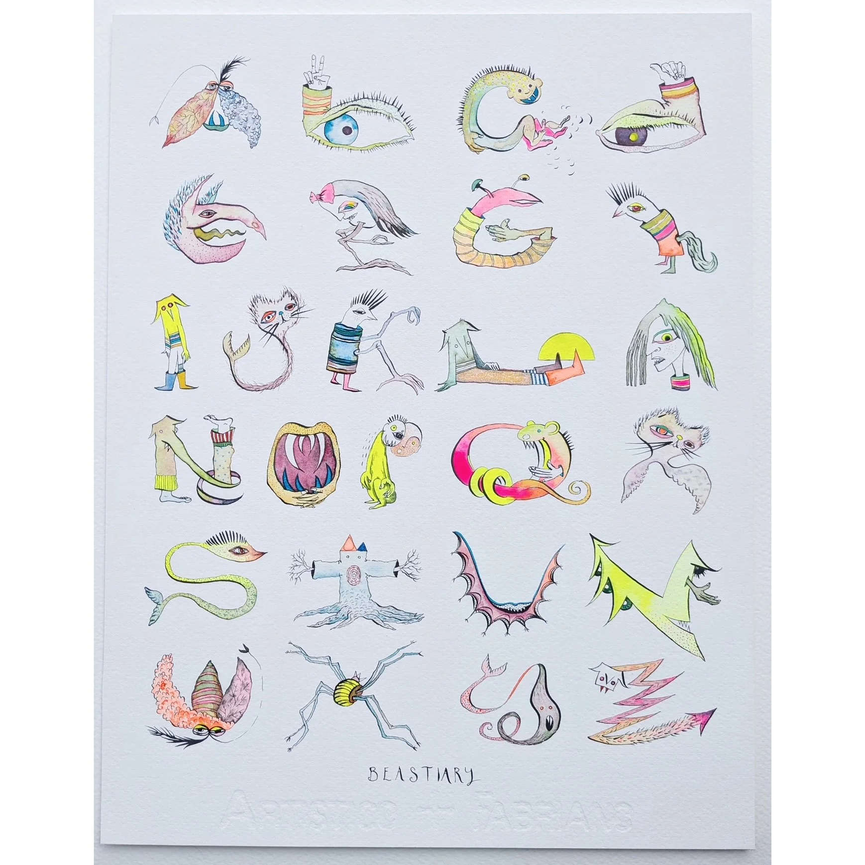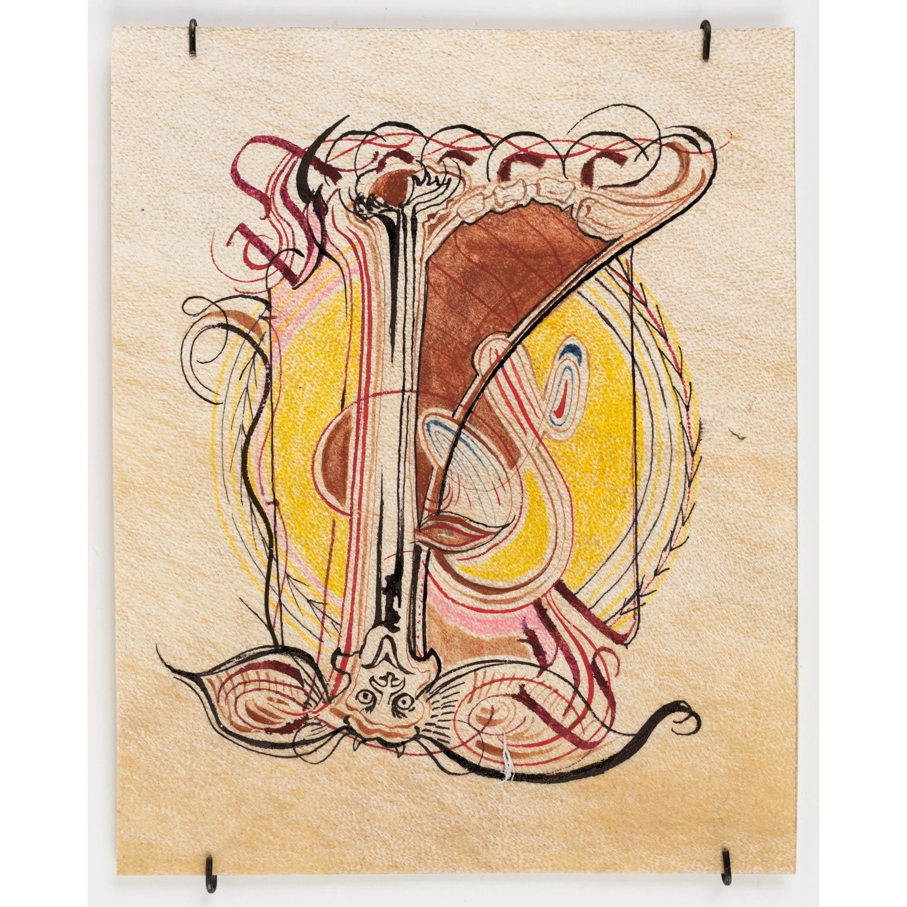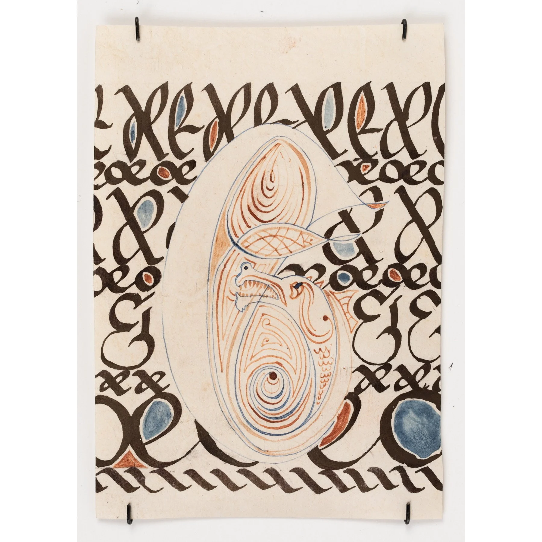 The Beasts of Sound series in particular is playfully rooted in the historical practice of calligraphic marginalia, which were often done as creative responses to boredom with a touch of irreverence. My Beasts form characters and portraits of possible sound creatures given corporeal forms, which are feral and irreverent of the glyphs and letters they appropriate and resemble. They allude to the nature of 'living language' and the haptic life of sounds, utterances & words.